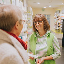 Wir sind Apotheke aus Leidenschaft: Als lokale Apotheke sind wir verpflichtet – im Gegensatz zum Medikamenten-Versandhandel – jede vom Arzt ausgestellte Verordnung anzunehmen und zu beliefern. Bei Nichtverfügbarkeit und Lieferproblemen tun wir alles, um eine gute Alternative für Sie zu finden.